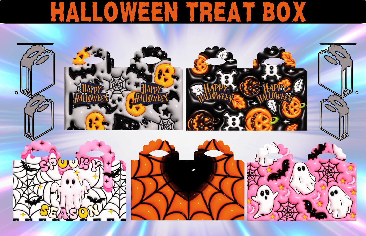 These fun and festive Halloween Treat Boxes are perfect for party favors, candy giveaways, and spooky celebrations. With vibrant 3D-style designs featuring ghosts, pumpkins, webs, and bats, they instantly add charm to any Halloween event. Easy to assemble, sturdy, and eye-catching—an amazing way to surprise kids and guests with sweet treats in style!