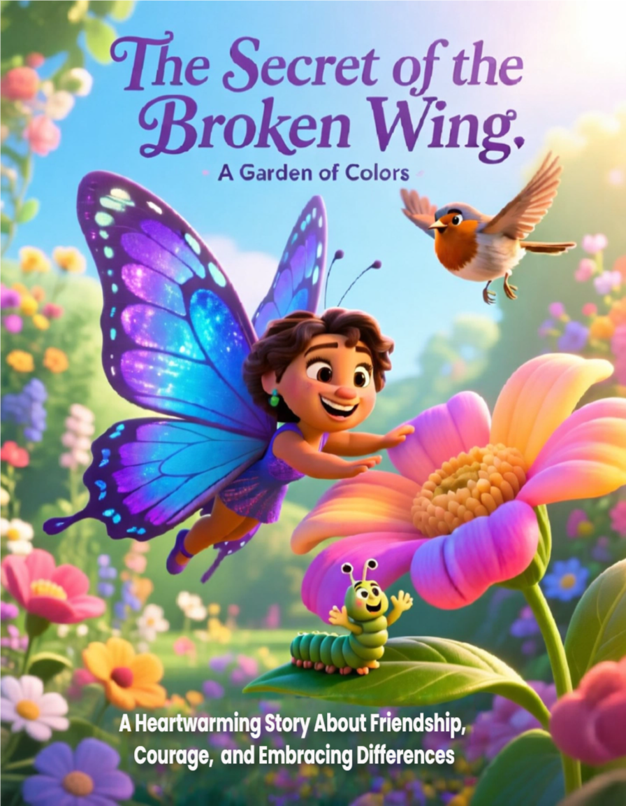 The Secret of the Broken Wing is a heart-touching children’s story about a butterfly named Luna who loses one of her wings — but with the help of her friends, she learns to fly again in her own way.