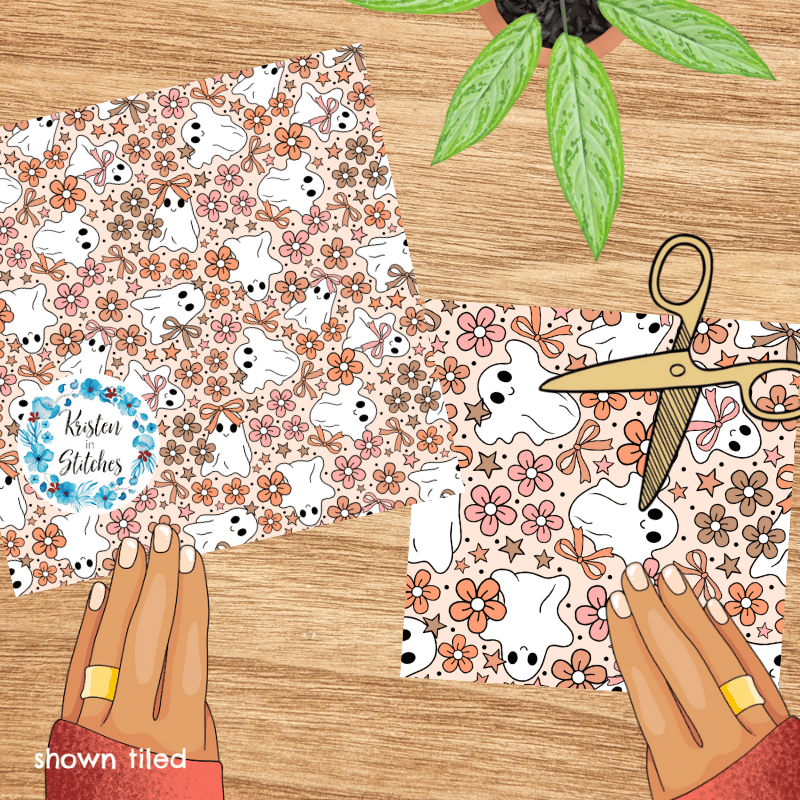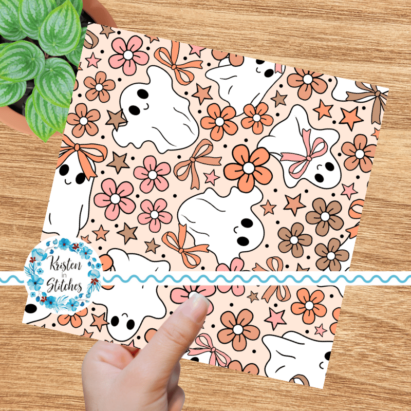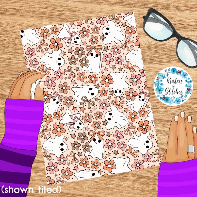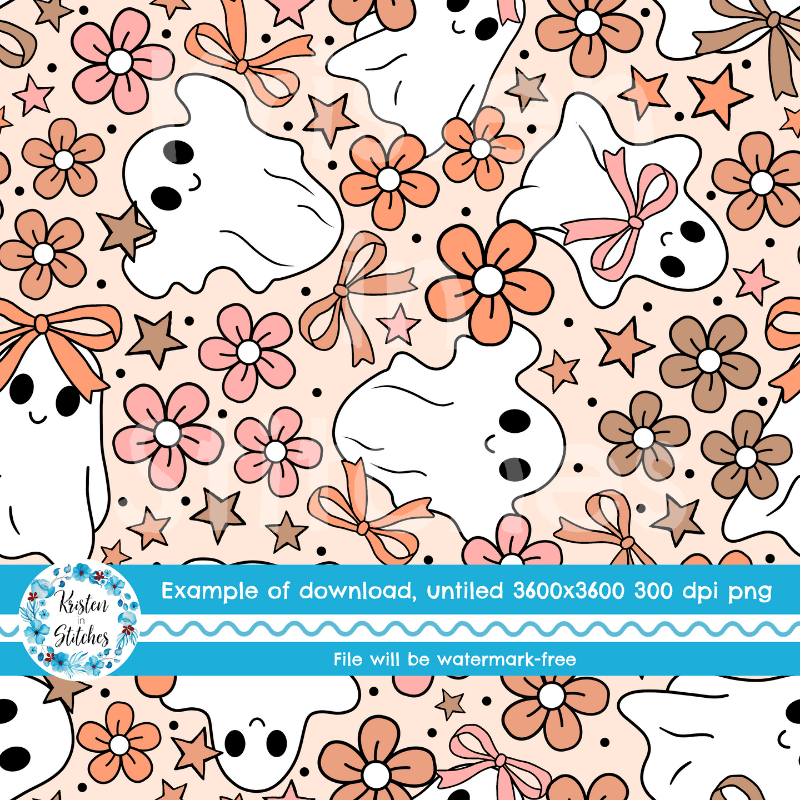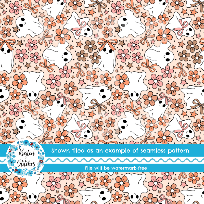 Girly Halloween Ghosts and Flowers Seamless Pattern, Coquette Bows