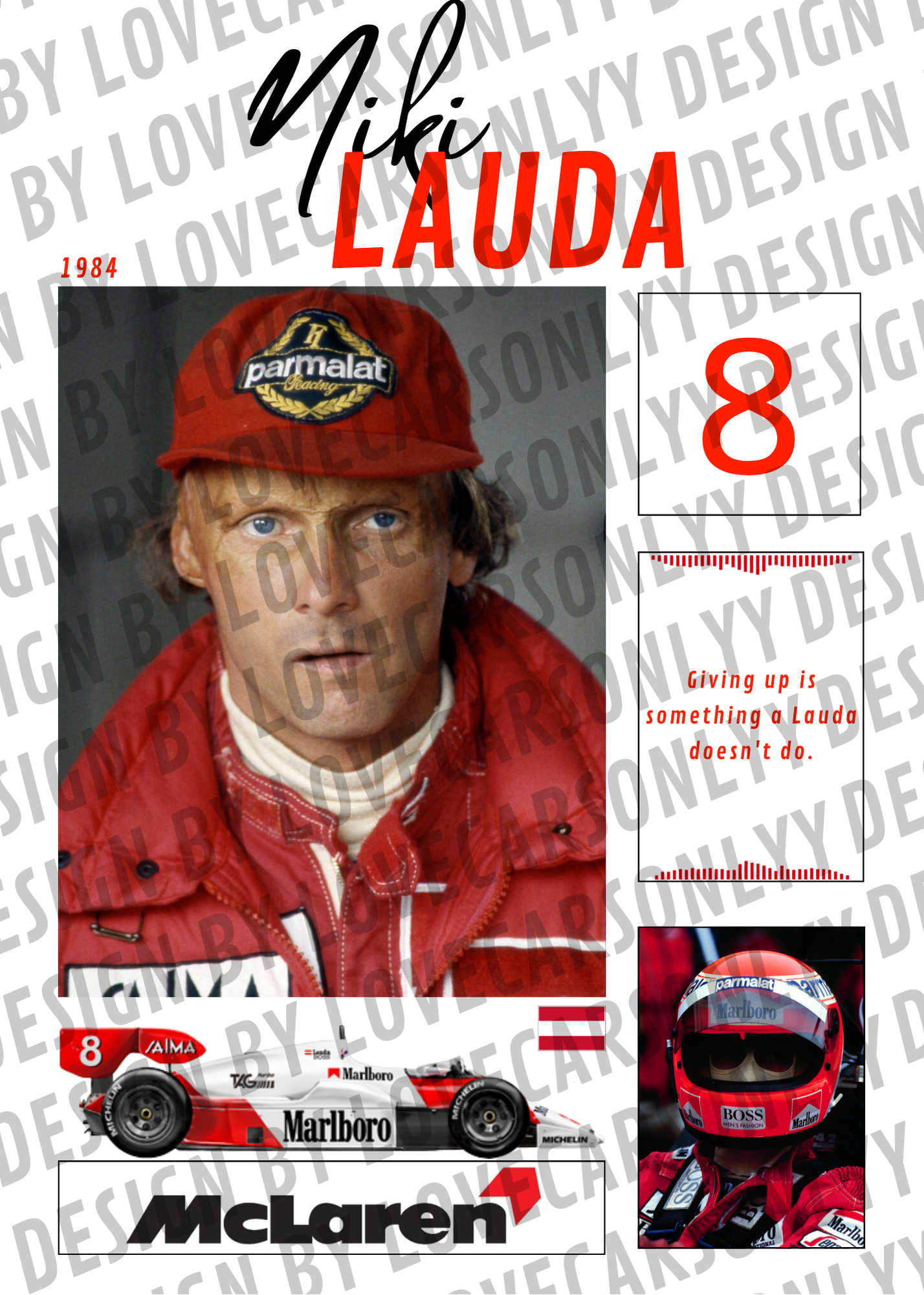 NIKI LAUDA POSTER - 1984 WORLD CHAMPION | MCLAREN DESIGN