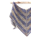 The shawl is designed as a perfect two-skein project — one skein per color — but it can also be worked in a single shade to let the texture take center stage, or in several shades for even more colorplay. You can enlarge the shawl by adding more pattern repeats (yardage will vary).