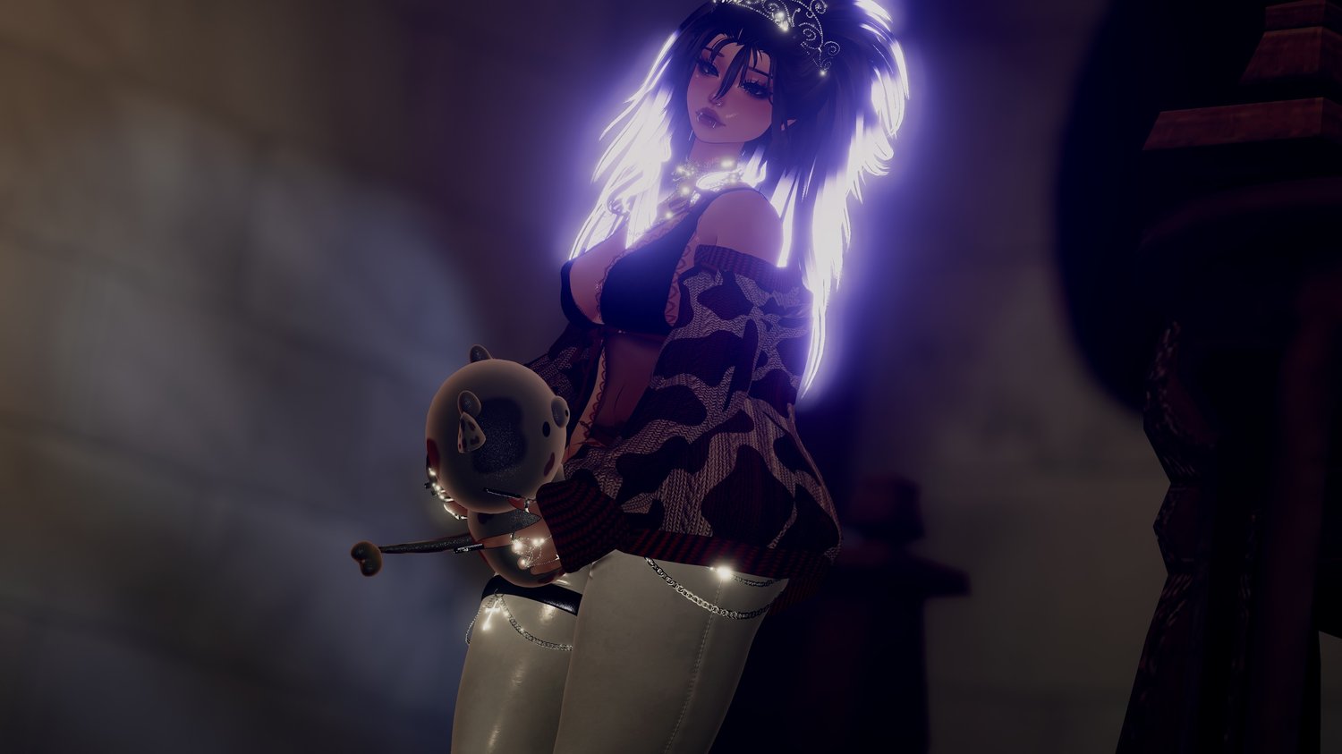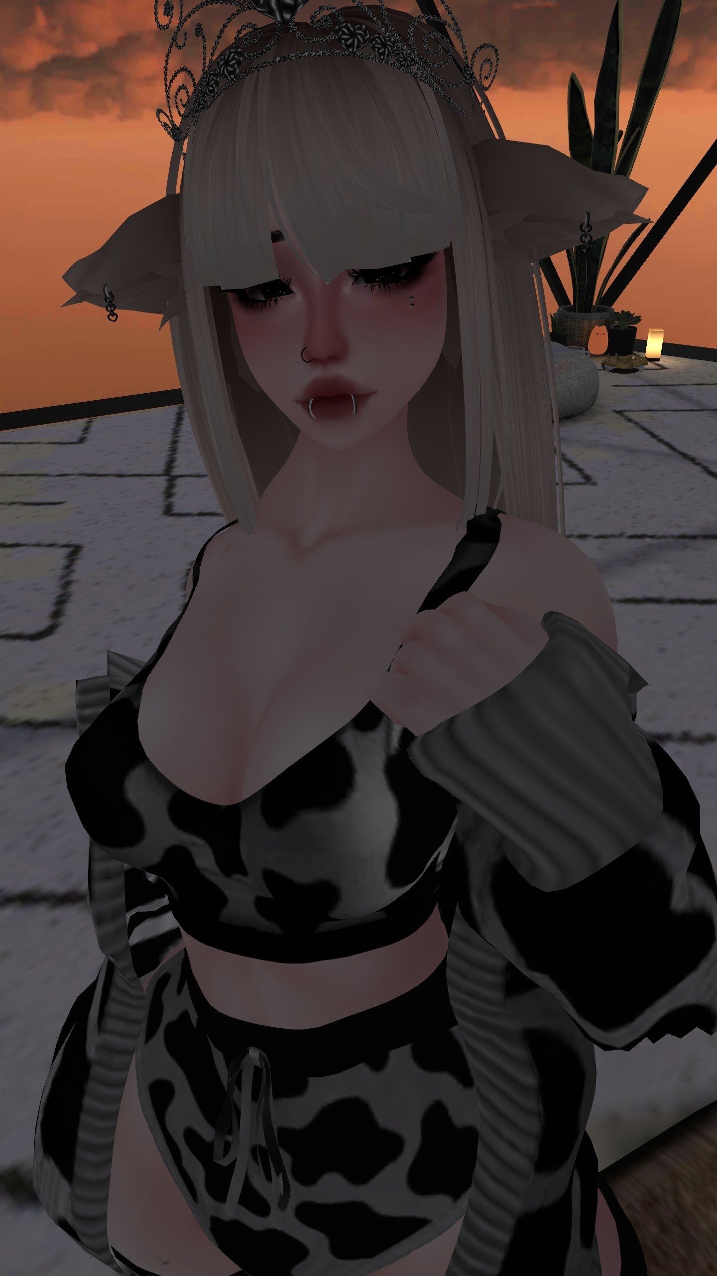 ๐ต ๐๐๐:ย Cow Plush, Socks, Garter L, Garter R, Heels, Crown,NITRO - {Face Chain, Belt, Nose Ring, Necklace, Hand Jewels,} Nails, Sleeves, Chest Rope, Leg Rope, Harness