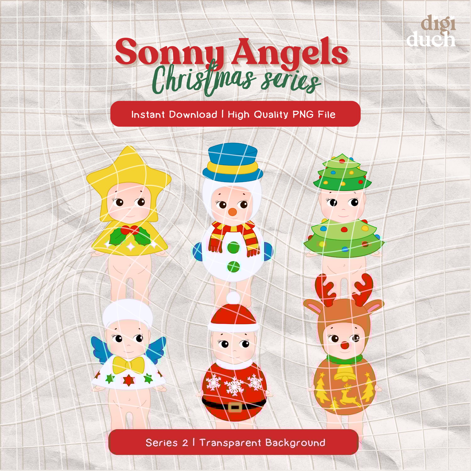 Bring festive cheer to your creations with this adorable Christmas Sonny Angel PNG collection! Featuring over 20 high-quality PNG files with transparent backgrounds, this bundle is perfect for adding a touch of kawaii charm to your holiday designs.
