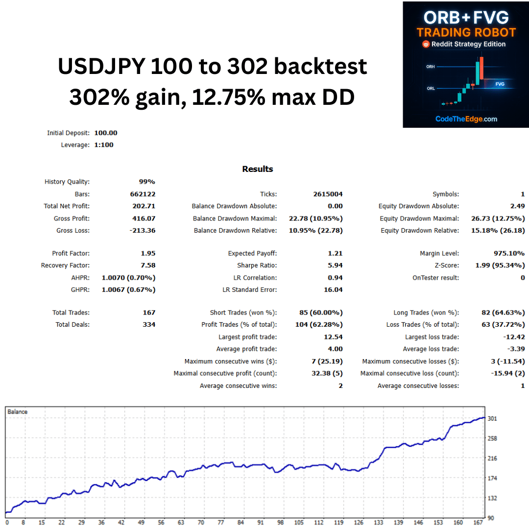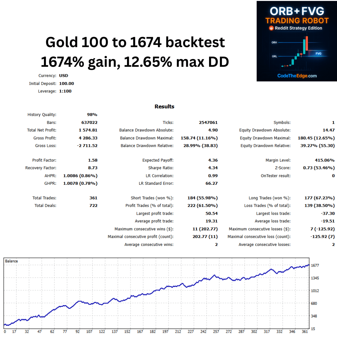 This trading robot is based on a highly praised strategy discovered on Reddit, built around the Opening Range Breakout (ORB) combined with Fair Value Gap (FVG) confirmation. We’ve taken the exact rules from the original thread and transformed them into a fully automated MetaTrader 5 system — precise, structured, and completely rule-driven.