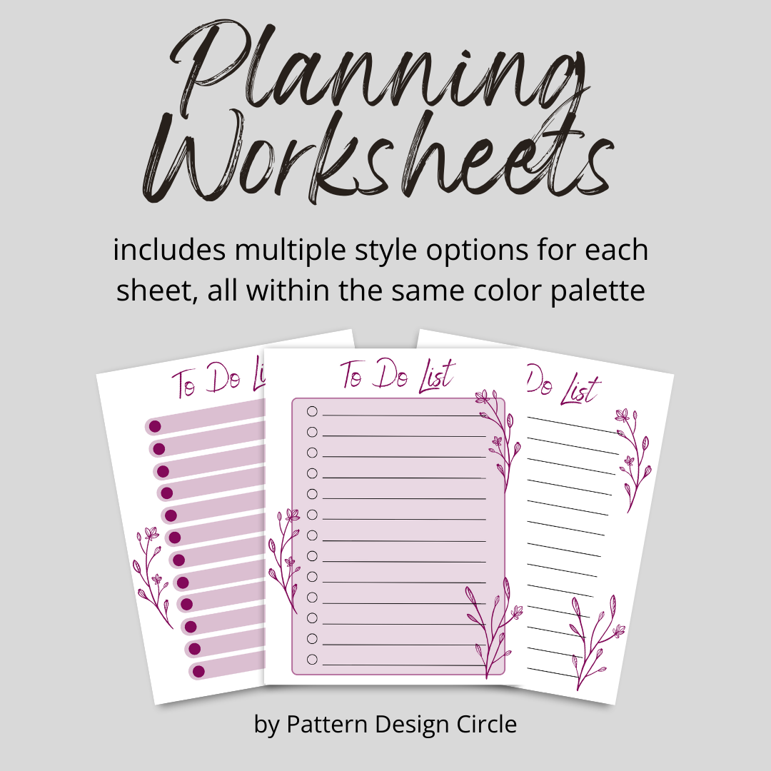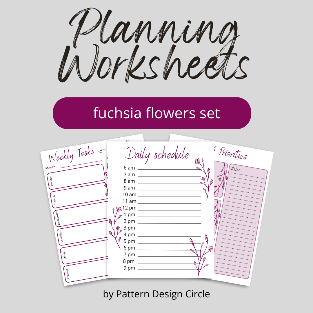 Purchase of this set includes 13 total planning worksheets. This listing is the fuchsia flowers set.