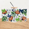 Features footballs and cheer bows in Seattle Seahawks team colors.