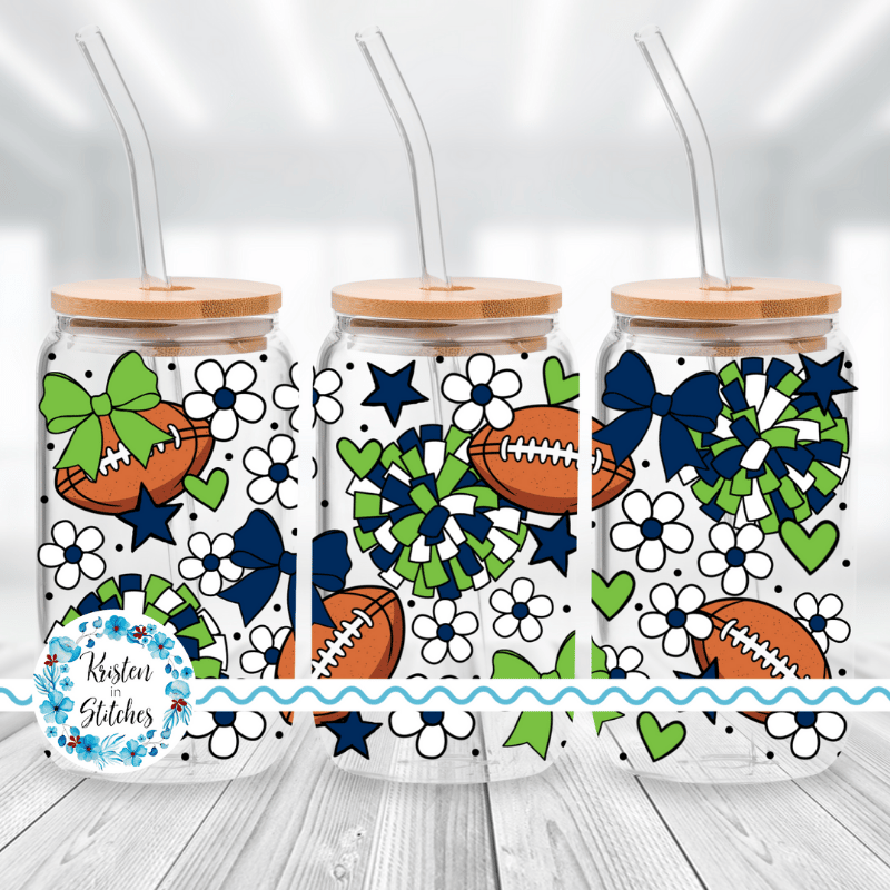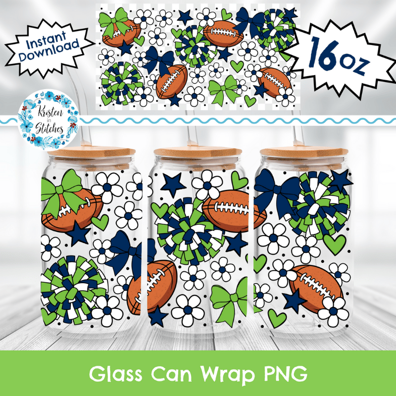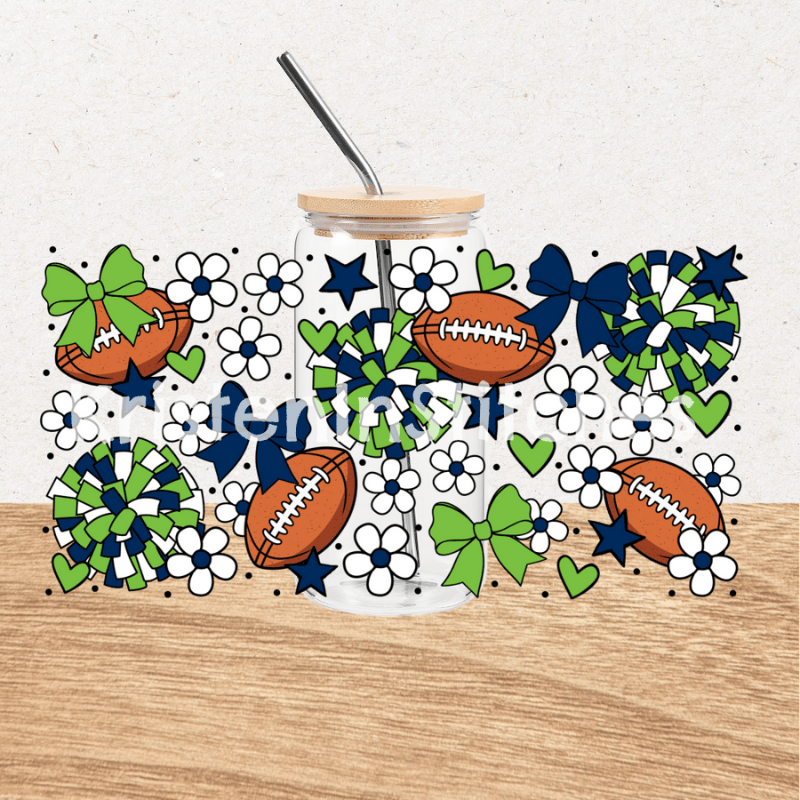 Football Team 16 oz Glass Can Wrap Transparent PNG, Seattle Seahawks Green and Navy Blue