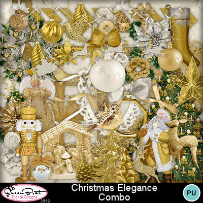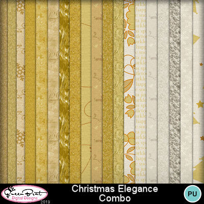 A fancy Christmas kit with elegant gold backgrounds and embellishments. Kit is filled with glitter and shine and is a must have for your Christmas scrap collection!