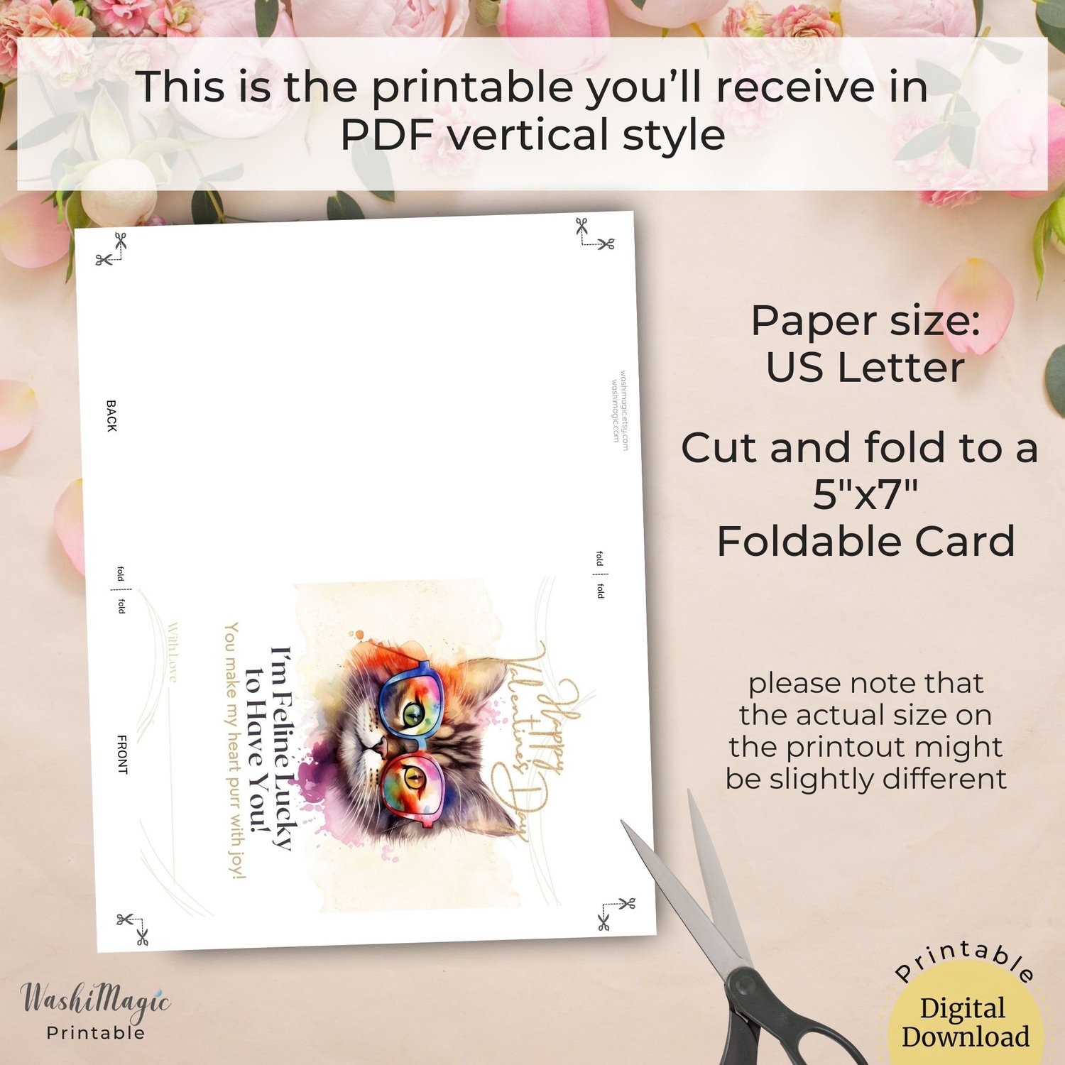 🗒️ The printables are PDF and JPEG files. The paper size is 8.5x11" (US Letter) and fold it to 5x7" (please note that the actual size on the printout might be slightly different).