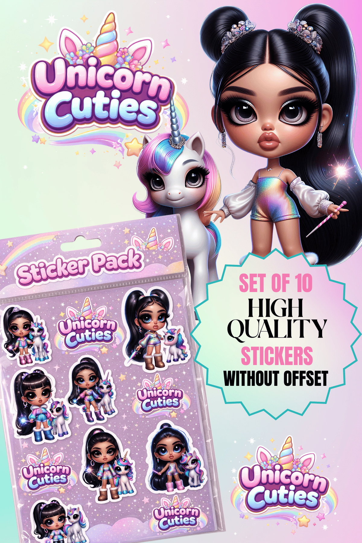 Unicorn Chibi Chics Hispanic PNG Images – 10 High-Quality PNGs