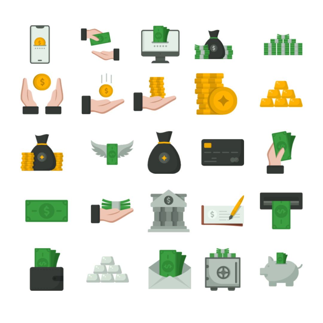 26 Money And Banking Icon Pack suitable for: Mobile Apps, Websites, Print, Presentation, Illustration, Templates