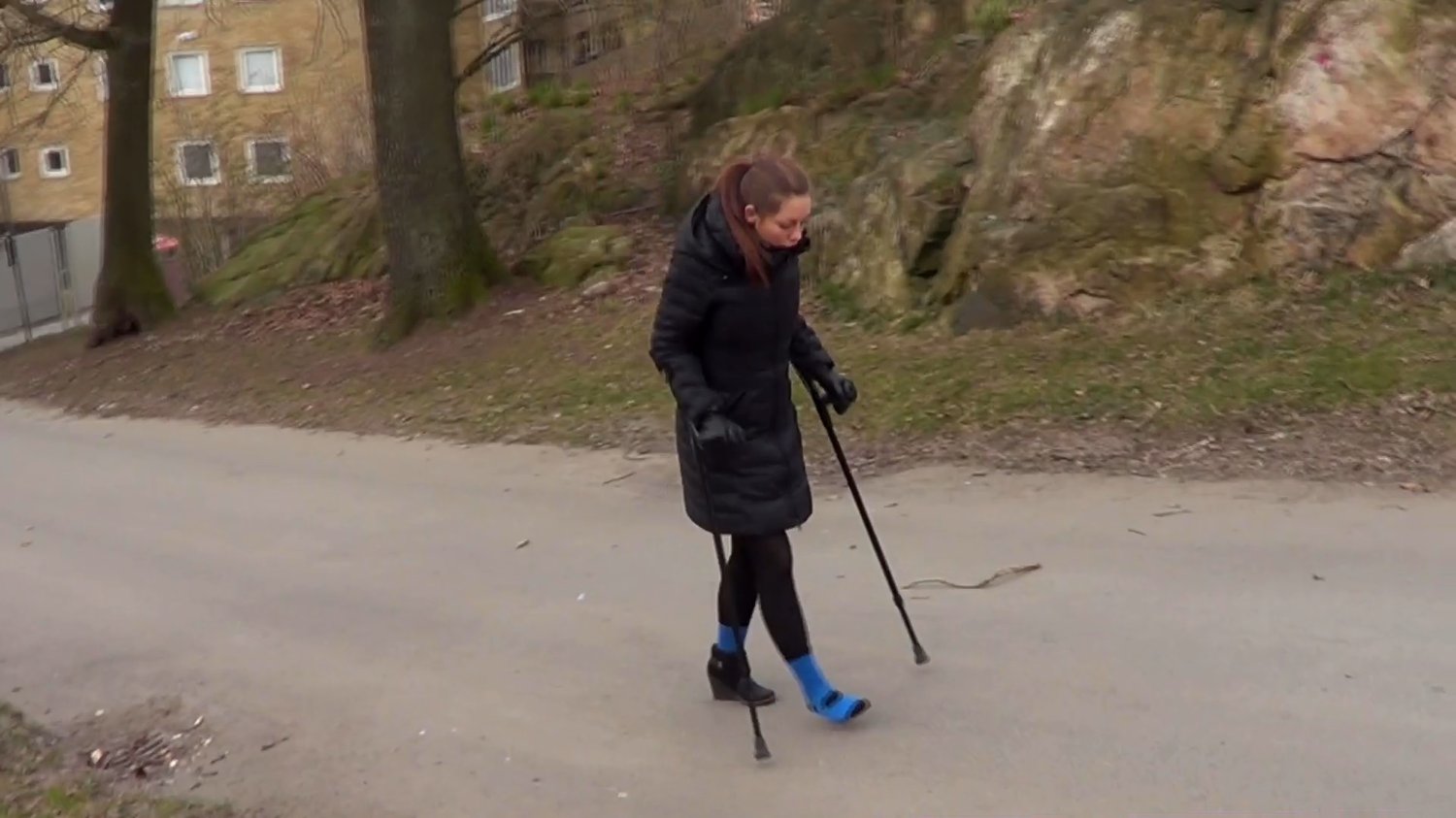 Melinda still can not get on a shoe on her injured foot as it's still too swollen but she can now gently walk on it or at least gently on her toes.Today is she walking up a steep road to a viewpoint over the city.You can see the pain in her eyes when she finally gets up and she immediately starts to crutch no weight bearing:Has all her walk on her toes hurt her foot worse?