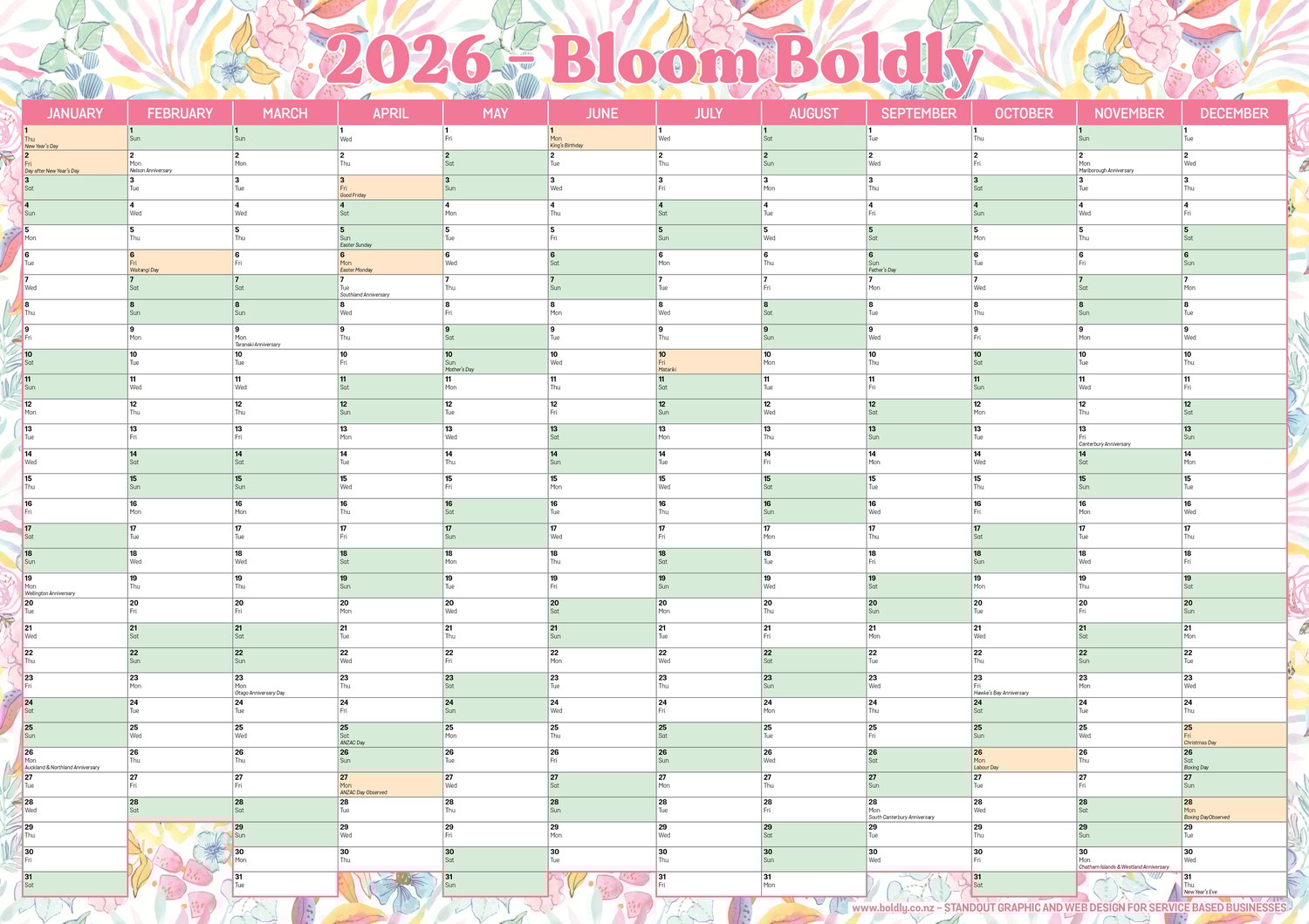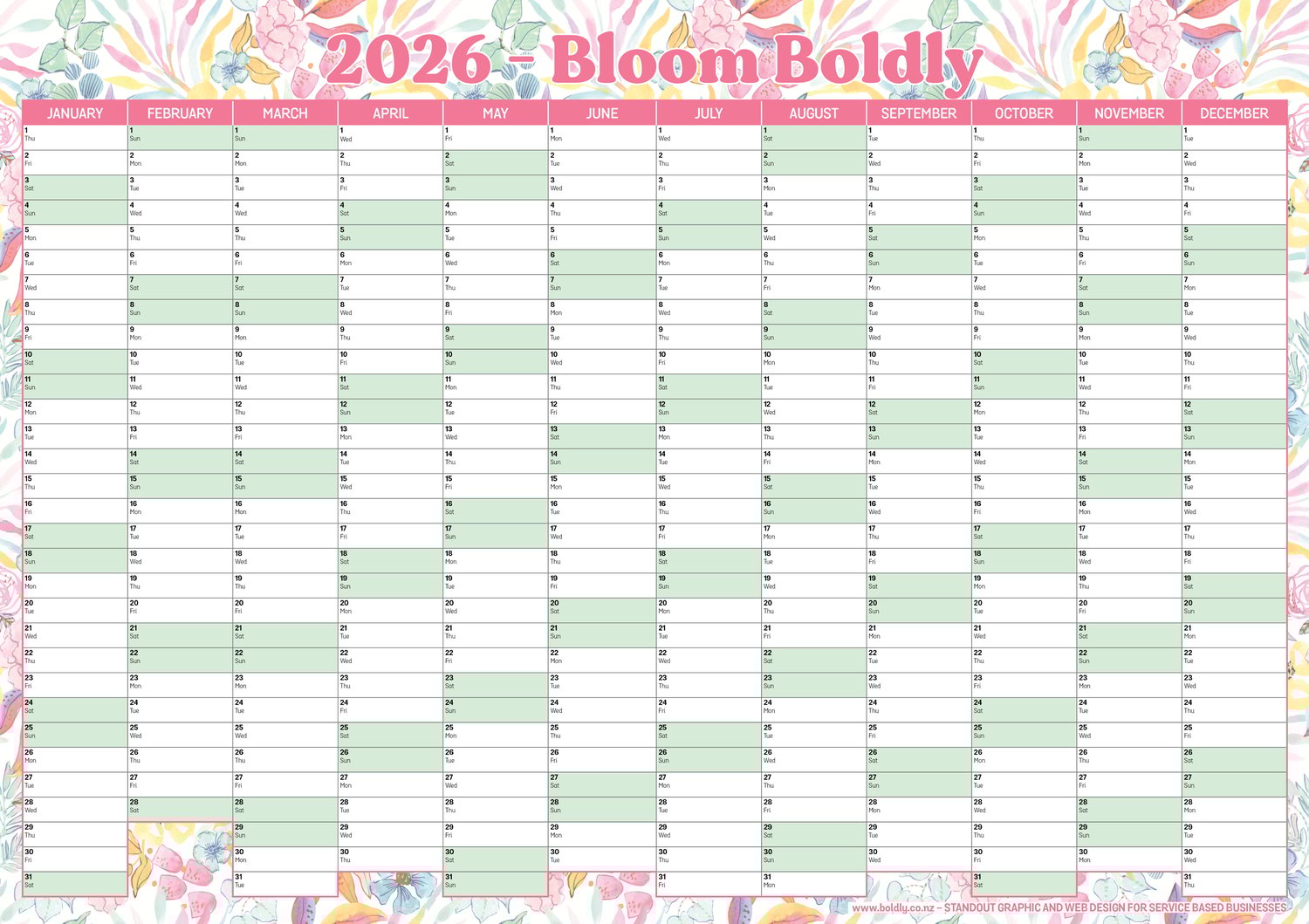 New for 2026! Or you can choose to download the fillable wall planner that highlights your weekends and lets you customise every date with your own plans. **You will need Adobe Reader or Acrobat to do this.**
