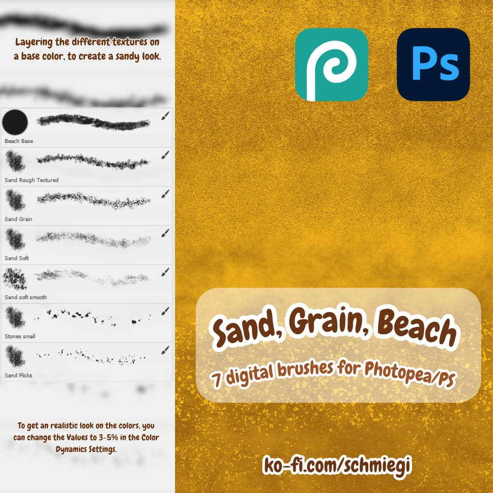 (Updated) Sand, Beach - Photopea/Photoshop CS+ Brush Set