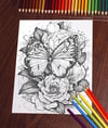A beautiful butterfly and flower coloring book with great detail for coloring. This is a beautiful and detailed illustration set for your coloring joy made by The Botanical Nook (TheBotanicalNook)! Coloring is such a fun activity to create your own, unique and beautiful works of art. You can instantly print it on your home printer and go right to coloring. Made a mistake? No problem! You can print it out again and start over.