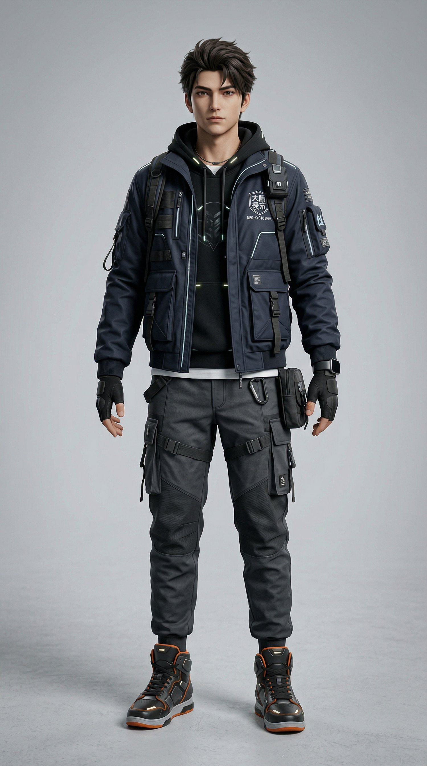 Full-Body Anime Male Character Prompt – Semi-Futuristic Japanese University RPG, Game-Ready 3D