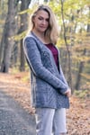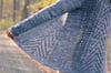 Construction: Avix is worked seamlessly from the top down in stockinette with expanding lace panels flanked by arrowhead mesh and eyelet columns. Back and fronts are worked separately to armscye depth, then joined and worked in one piece to the narrow ribbed hem. Stitches are picked up around the armholes, the sleeve caps are shaped with short rows, then worked seamlessly in stockinette to the forearm where an eyelet pattern extends to the cuffs. Stitches are picked up along the entire front edge and neck, then worked in ribbing with short rows, making it wider at the bottom and narrower at the neckline.