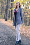 Size: 36 (40, 44, 48, 52, 56)” bust based on twice the back width; sample shown in second size worn with 5” positive ease.