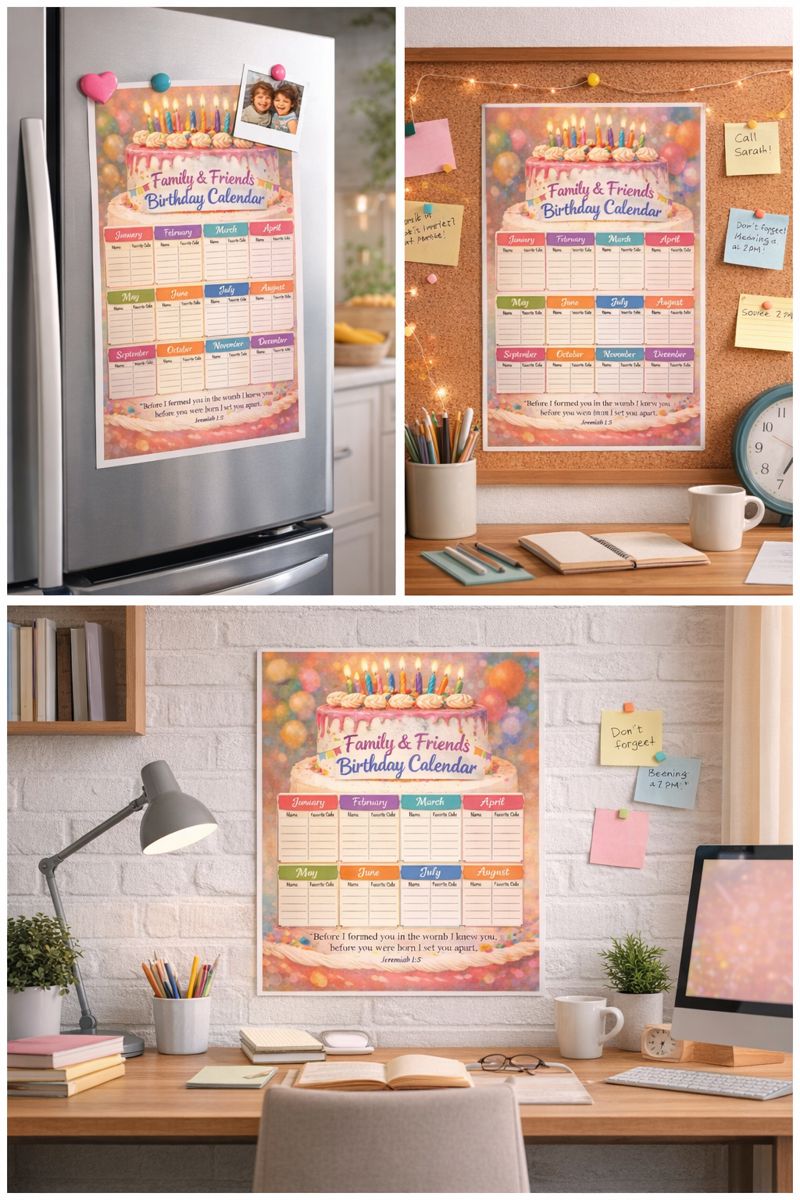 Never forget a birthday again with this beautifully designed Family & Friends Birthday Calendar, created to keep your loved ones’ special days organized all year long — without needing to be replaced each year.