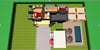 This modern house plan is an architectural masterpiece designed using three 40-foot shipping containers and a 20-footer. The containers are stacked two-on-two to create a modern container floor plan with 3 bedrooms, 3 bathrooms, and an open-plan living area. Additionally, the house boasts a swimming pool in the backyard, surrounded by a spacious pool deck area and outdoor living space perfect for entertaining.