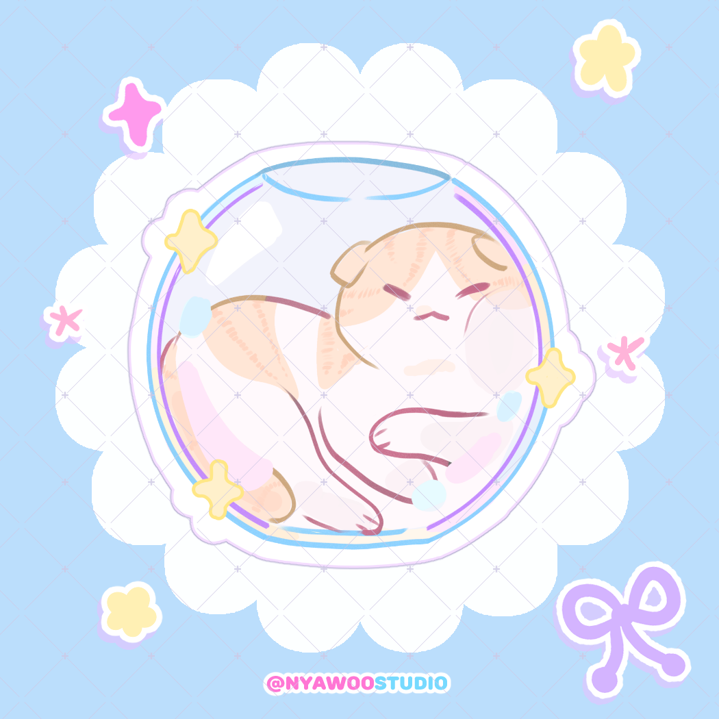 Cat in an Aquarium Holographic Waterproof Sticker Flakes