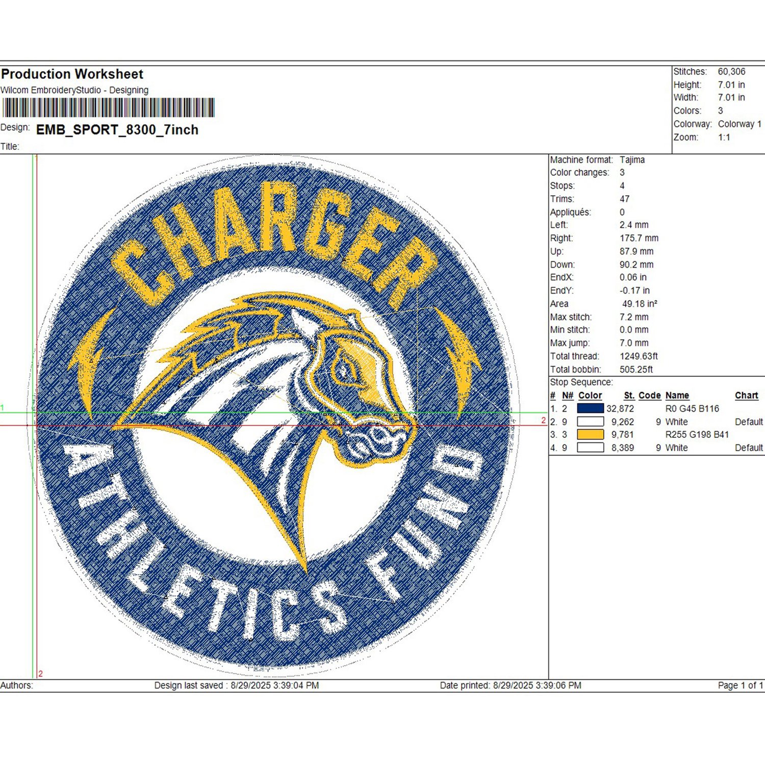 Charger Athletics Fund Football Team Logo Embroidery Designs, Ncaa Embroidery Files, NCAA New Haven Chargers Team Logo Embroidery, Game Day Machine Embroidery Design, Digital Download