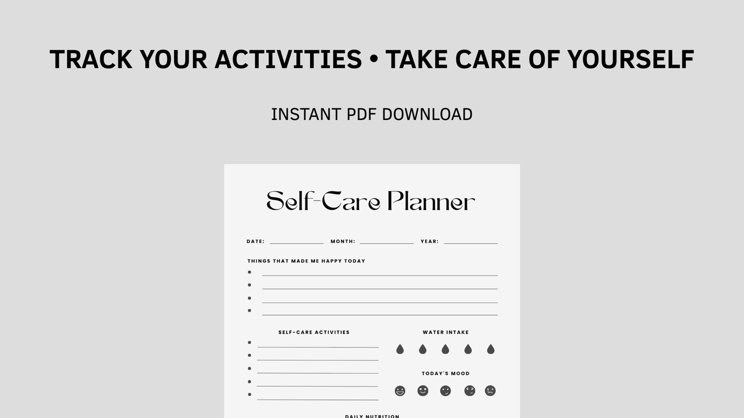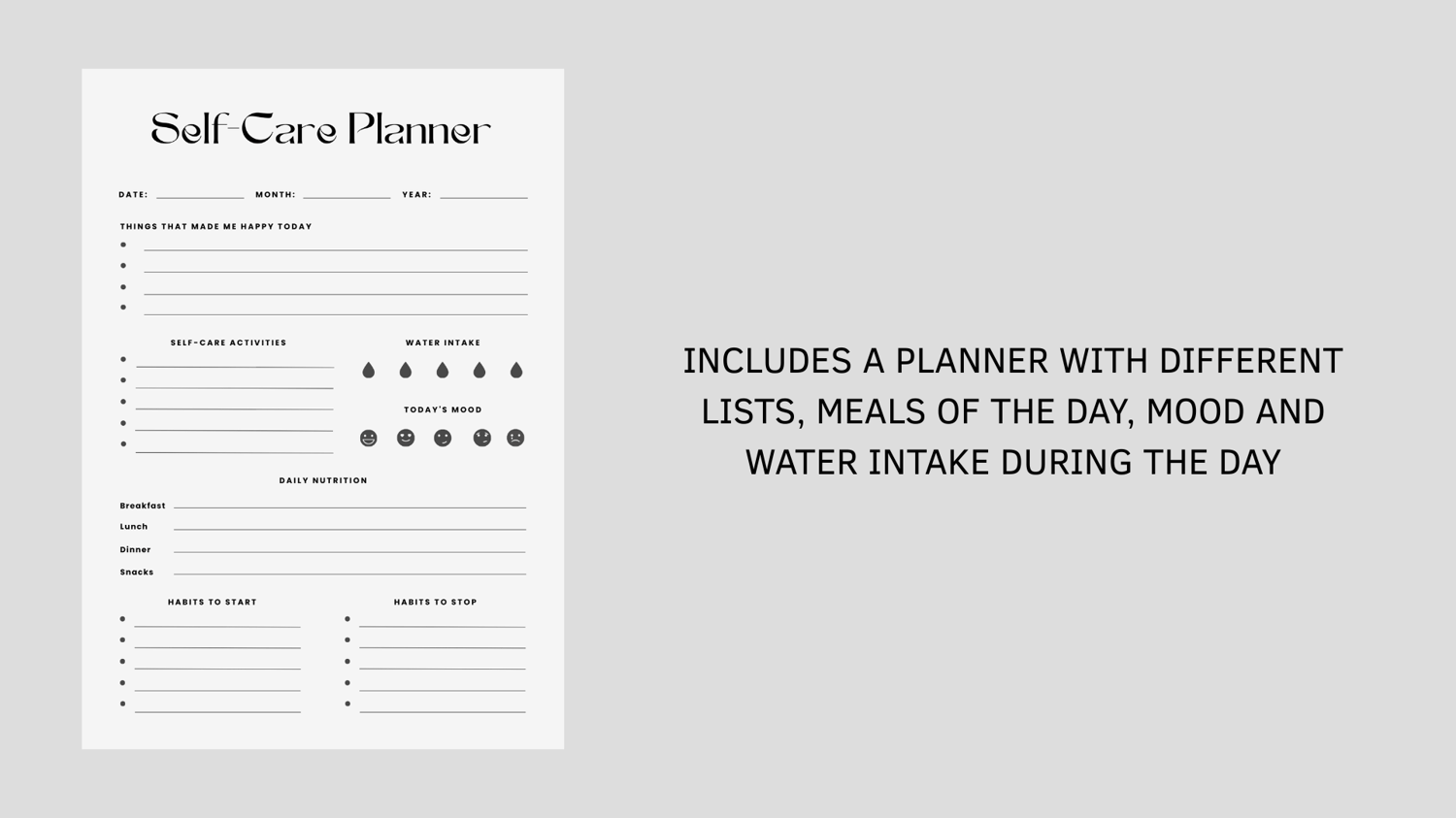 Prioritize your well-being and stay mindful with this Self Care Planner. Designed to help you nurture healthy habits and a positive mindset, this easy-to-use daily sheet includes: