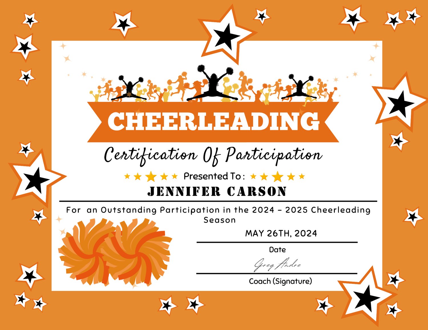 TEMPLATE SIZE FOR CHEERLEADER CERTIFICATE