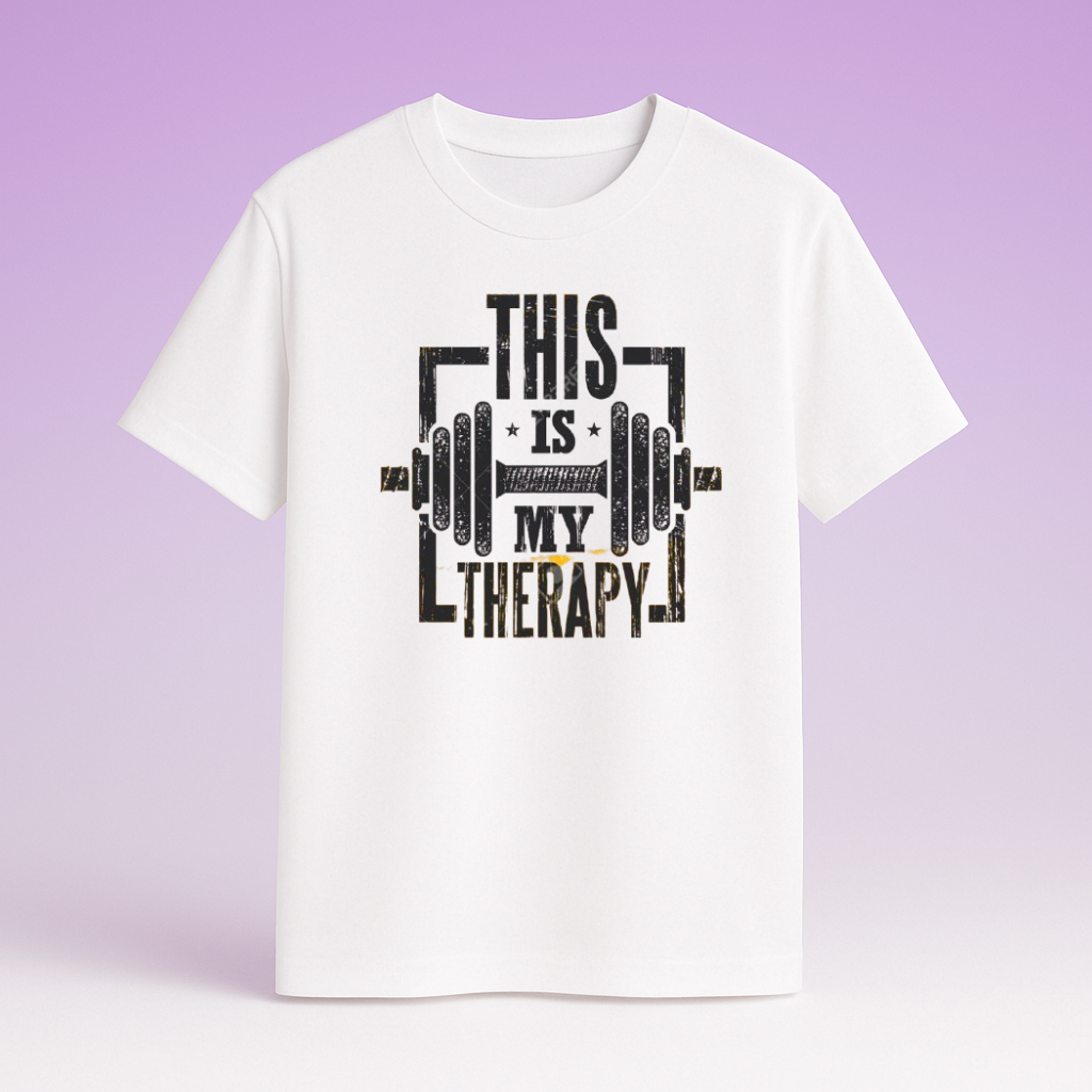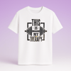 This unisex tee is a perfect statement piece for anyone who finds their peace and strength in the gym. It features the bold, distressed graphic "This Is My Therapy" with a barbell icon. Made from a durable, heavyweight 5.3-ounce fabric, this t-shirt is built for comfort with a seamless design, taped neck and shoulders, and a tear-away label.