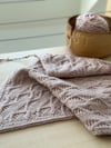 21.5 sts x 29.5 rows = 10cm x 10cm (4”x 4”) in stitch pattern after blocking (based on Section 3 (Chart C) Rows 1 – 32 over 28 sts).