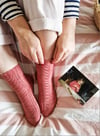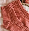 The Sentimental socks begin at the cuff with a cosy rib and moves into a striking yet simple eyelet and cable like pattern, you won’t need a cable needle though. The pattern contains three sizes, small, medium, and large and is knitted top down with a slip stitch heel and a flap and gusset construction. They end with a rounded toe. There’s enough detail in the pattern to keep the knitting interesting, but nothing that should be too tricky for a new sock knitter to master. This timeless design would look beautiful in almost any yarn, a tonal or lightly speckled yarn will really show off the stitches.