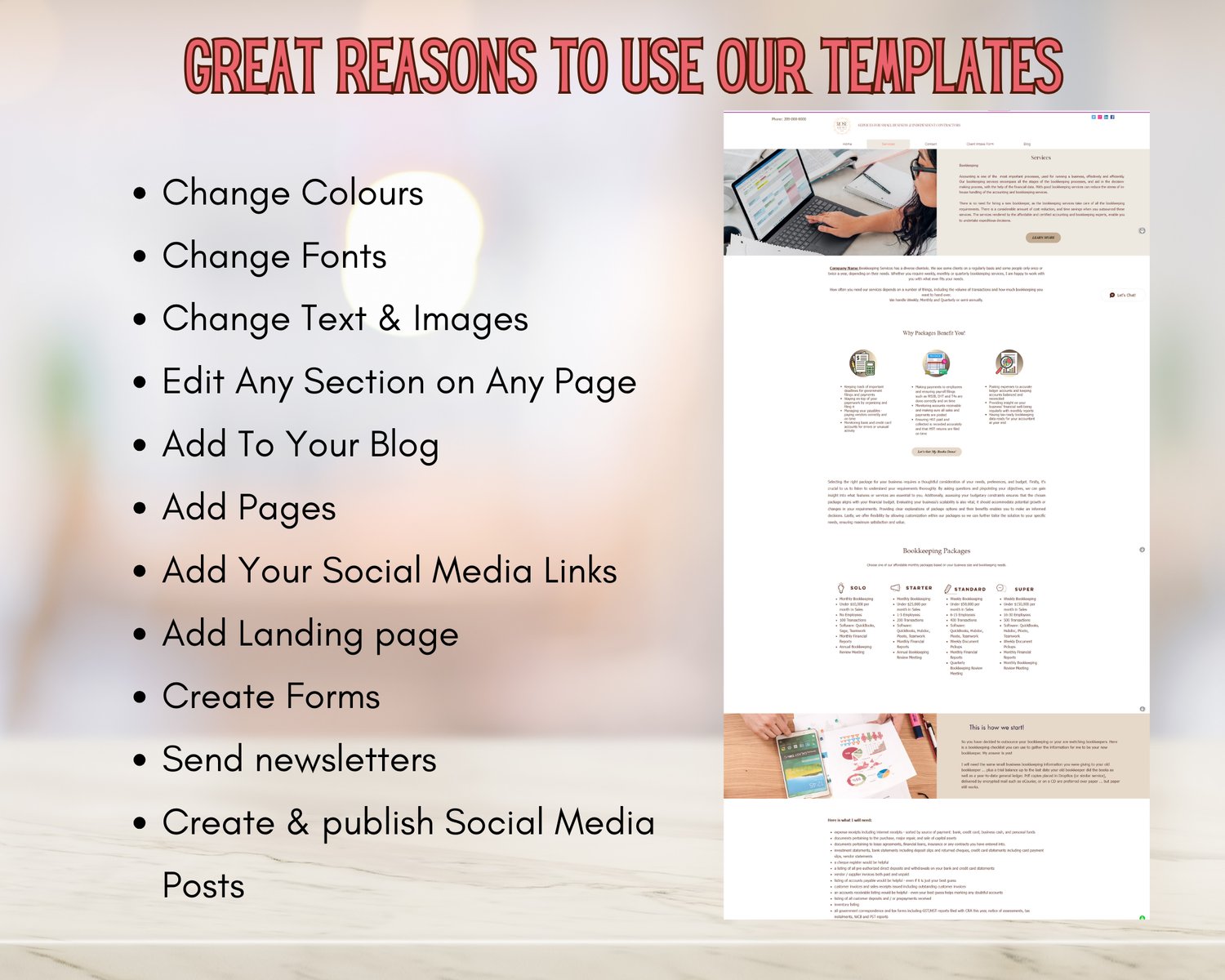Elevate your online presence with this beautifully designed Wix website template tailored for bookkeepers, accountants, and small business professionals. Whether you’re just starting or refreshing your brand, this template is perfect for creating a polished, modern website that reflects your expertise.