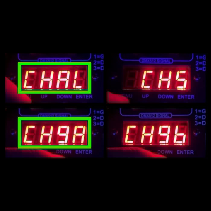 * Verifique, desde el display del equipo, que el menú "CHAL" muestre los modos "CH5", "CH9A" y "CH9b" (tercer foto).