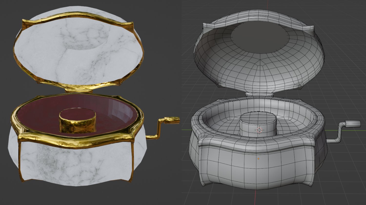 This is a custom-made Music Box Asset, created and textured by me using Blender and Substance Painter.