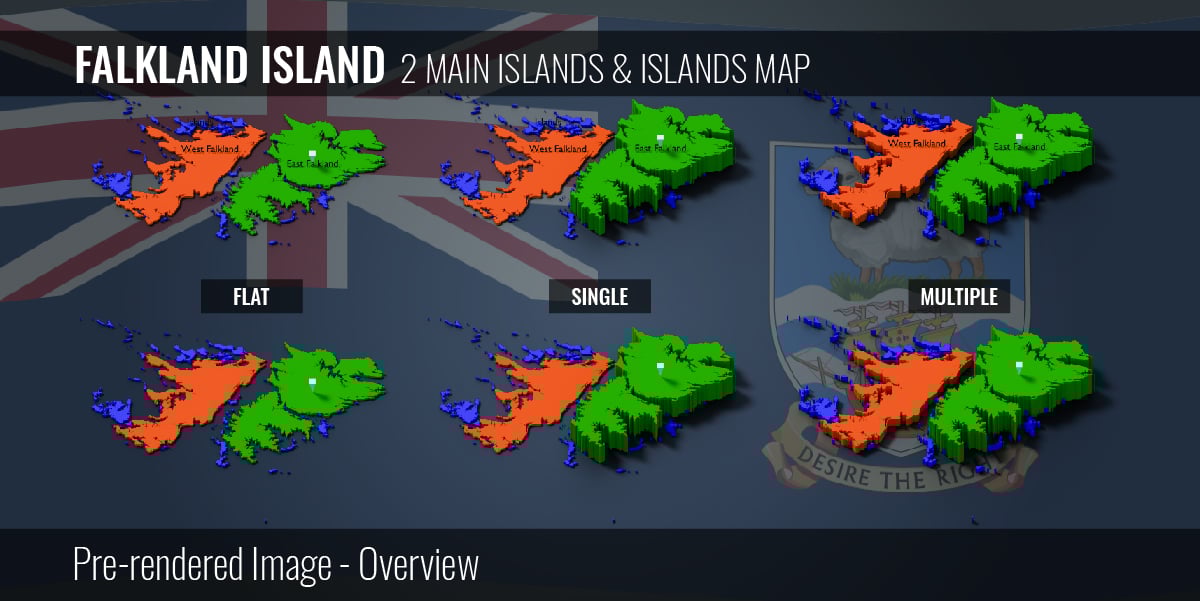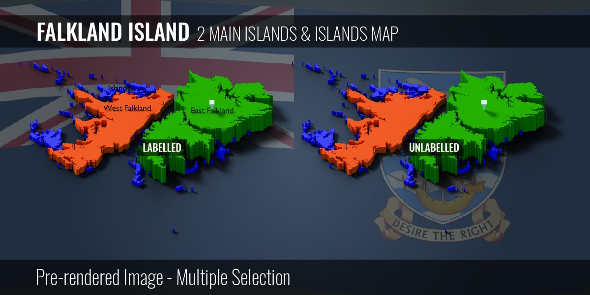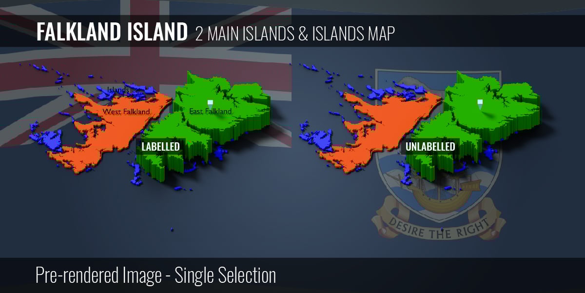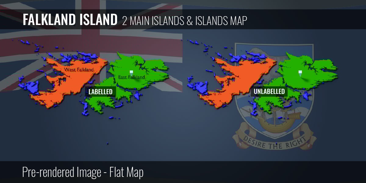 Falkland Island - 2 Main Islands & Islands Map (3D + Pre-rendered Images)