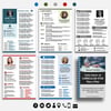 - 17 Modelos de Plantillas de Curriculum Vitae: variedad de formatos y colores en cada modelo de diseño.
