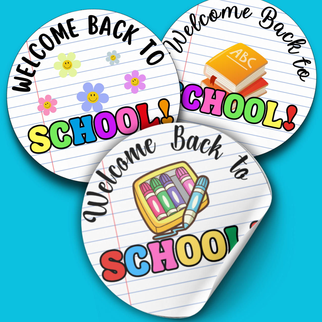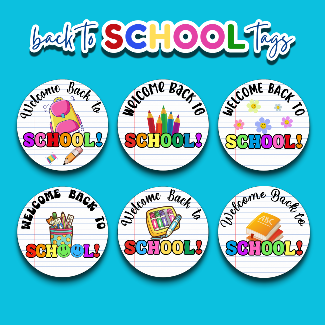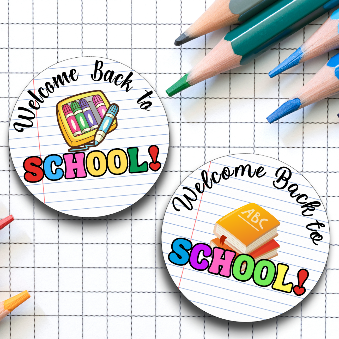 β Celebrate the start of the school year with vibrant 2" rounded printable gift tags featuring a cheerful βWelcome Back to Schoolβ message.
