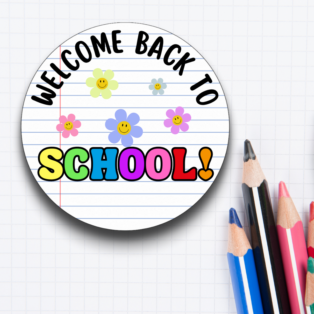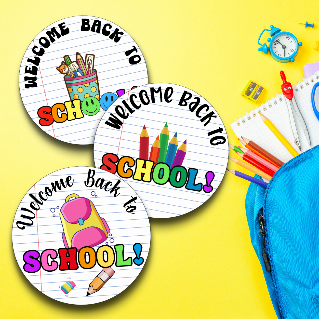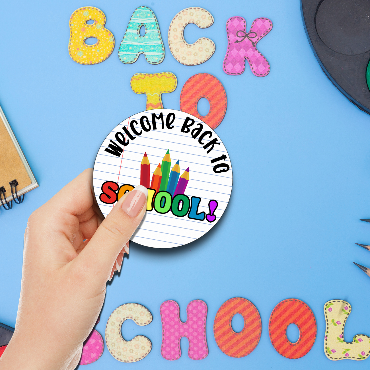 β Celebrate the start of the school year with vibrant 2" rounded printable gift tags featuring a cheerful βWelcome Back to Schoolβ message.