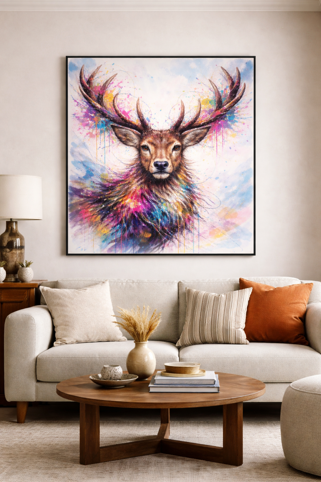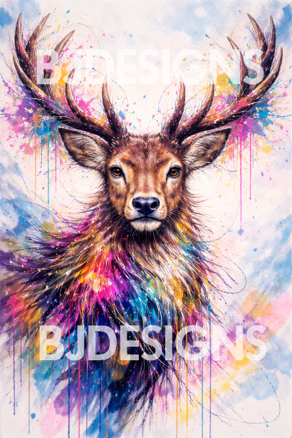 Bring powerful energy and vibrant colour into your space with this stunning colourful stag art digital download. Featuring a majestic deer with expressive antlers and dynamic splashes of bold, modern colour, this artwork blends nature, strength, and contemporary artistry—perfect for statement décor.