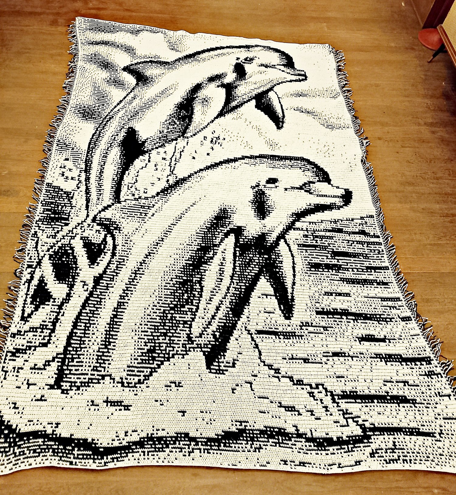 Overlay Mosaic Crochet King Size Blanket, DOLPHINS, written pattern row by row, Big Chart with Xs, PDF files