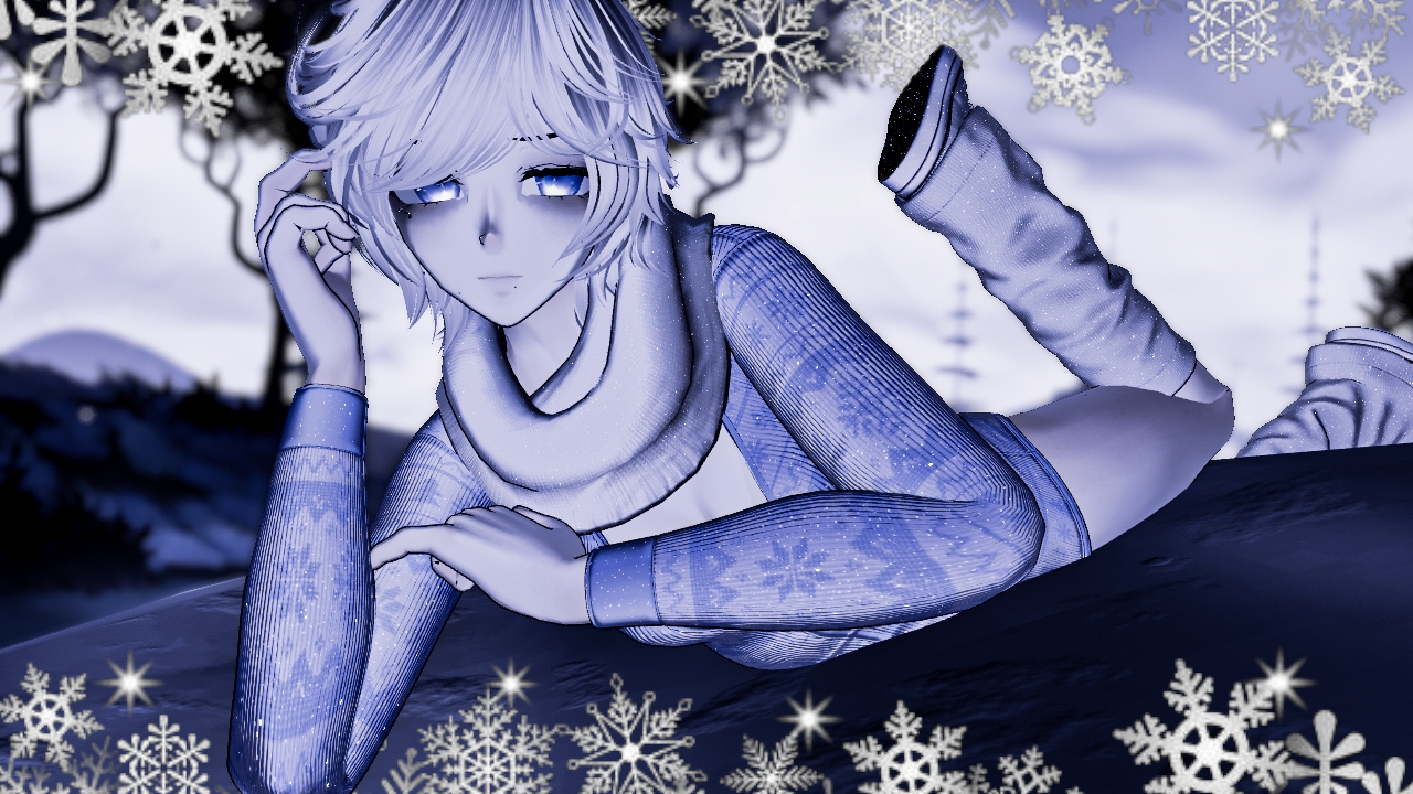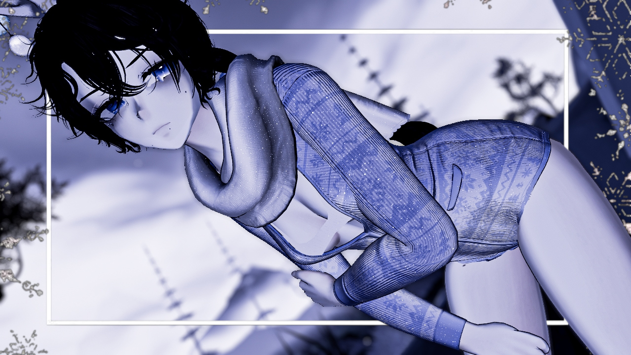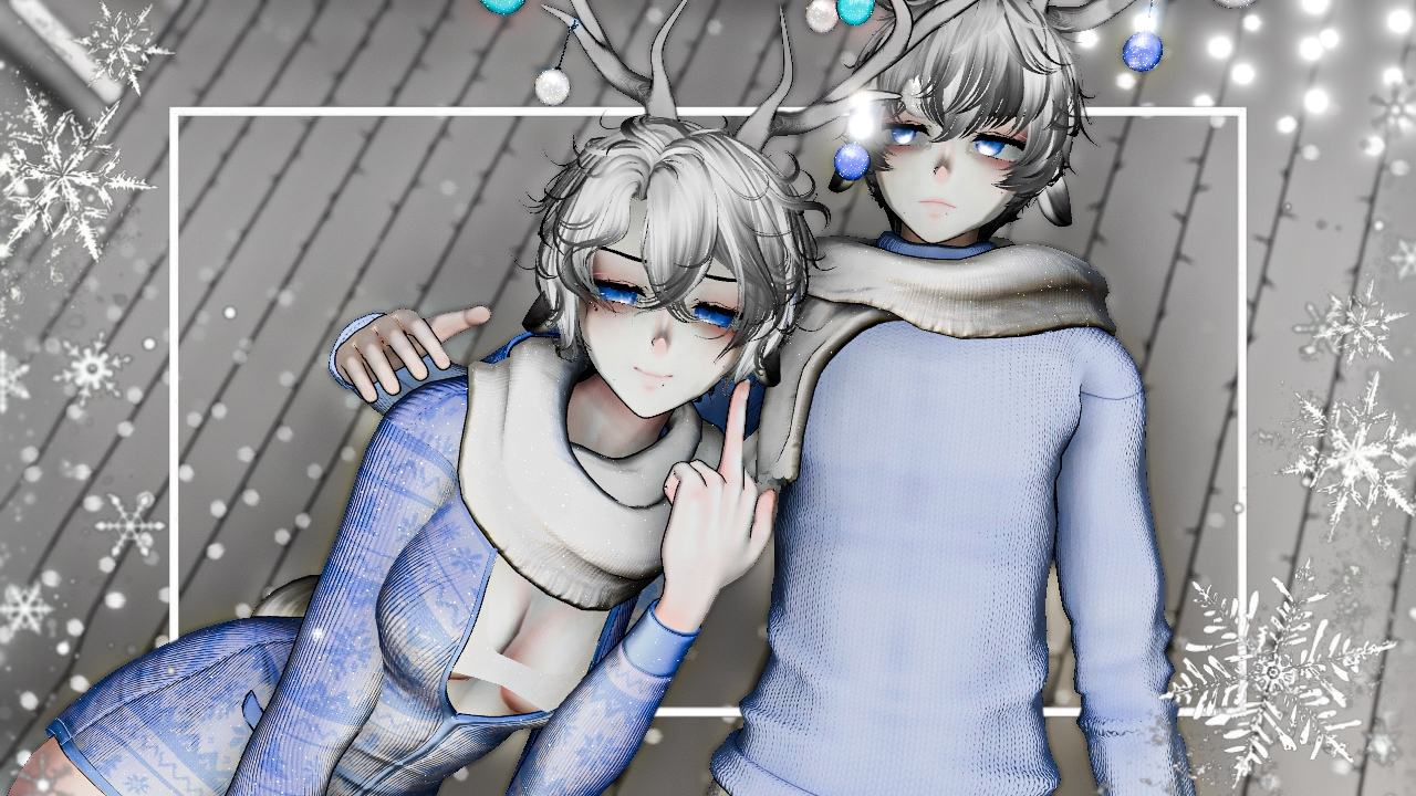 Willa (sivka.), Marble eyes (sivka.), Anime base (Zinpai.), Shoes (Scoopdewoo.), Scarf (Jorbur), Antlers (clally#6969), Snowflakes (Phawksea), Frost Breath (Violentpainter), Romper (Miriaaam), Hair1/Hair2 (Saikura), Warmers (xero3D), Top (.sugoi.)