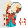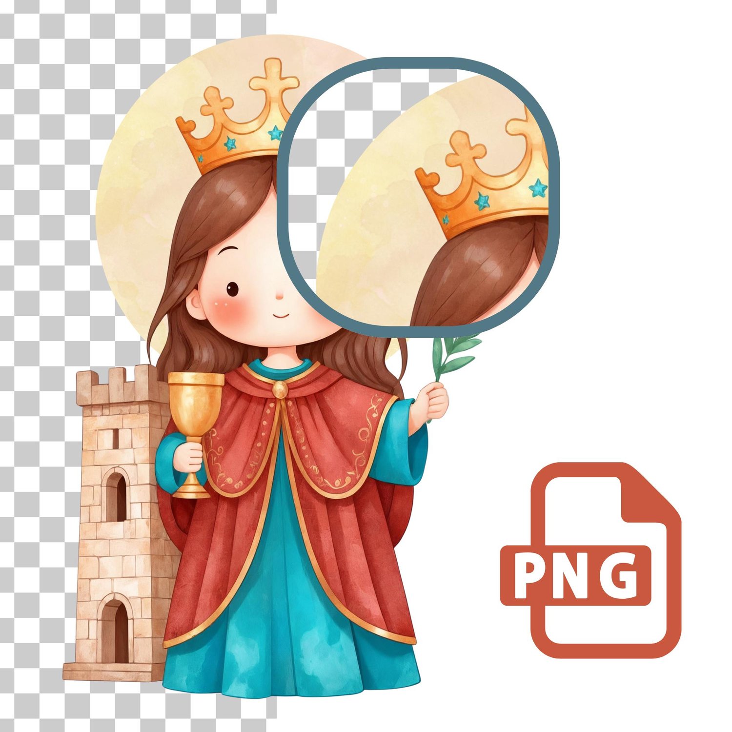 Santa Bárbara Clipart PNG Acuarela - Santito Kawaii Ilustración Digital para Devoción, Estampas y Bautizo - Patrona del Rayo