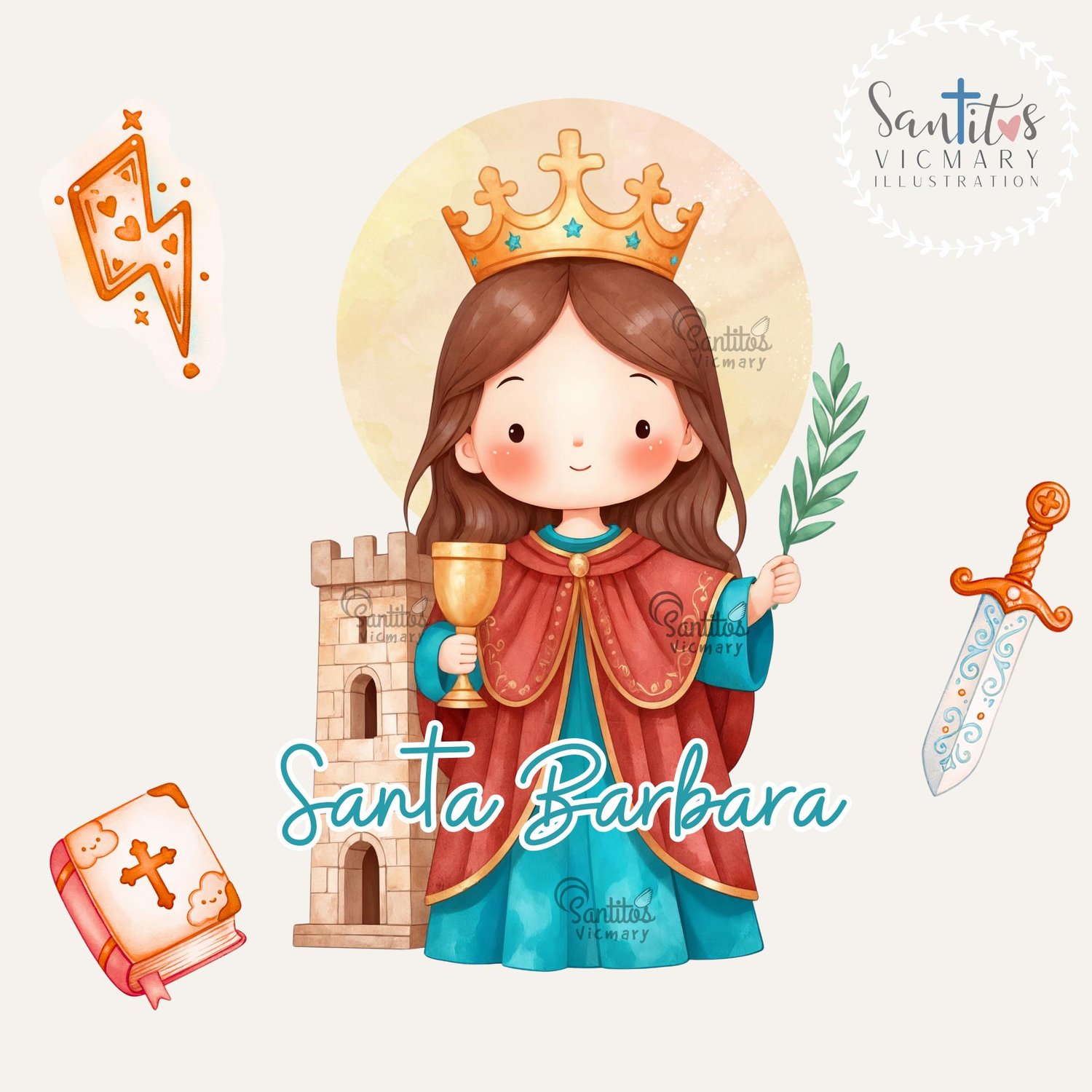✨ Clipart de Santa Bárbara Mártir - Ilustración Tierna Estilo Santito ✨
