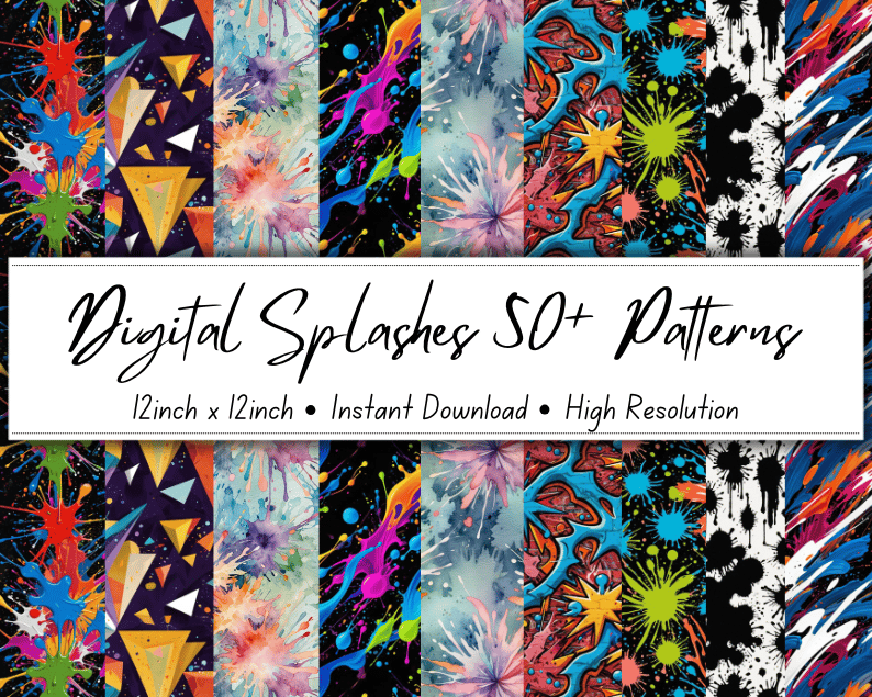 Digital Splashes 50+ Patterns Collection | 12x12 Inches | High-Resolution Digital Printables | Instant Download