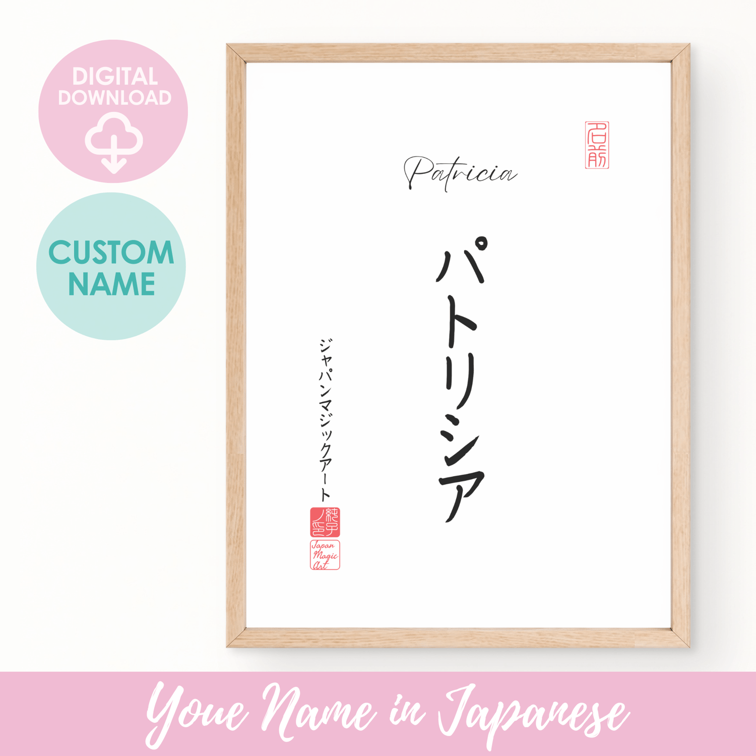 My Name in Japanese Wall Art, Traditional Calligraphy Printable Room Decor