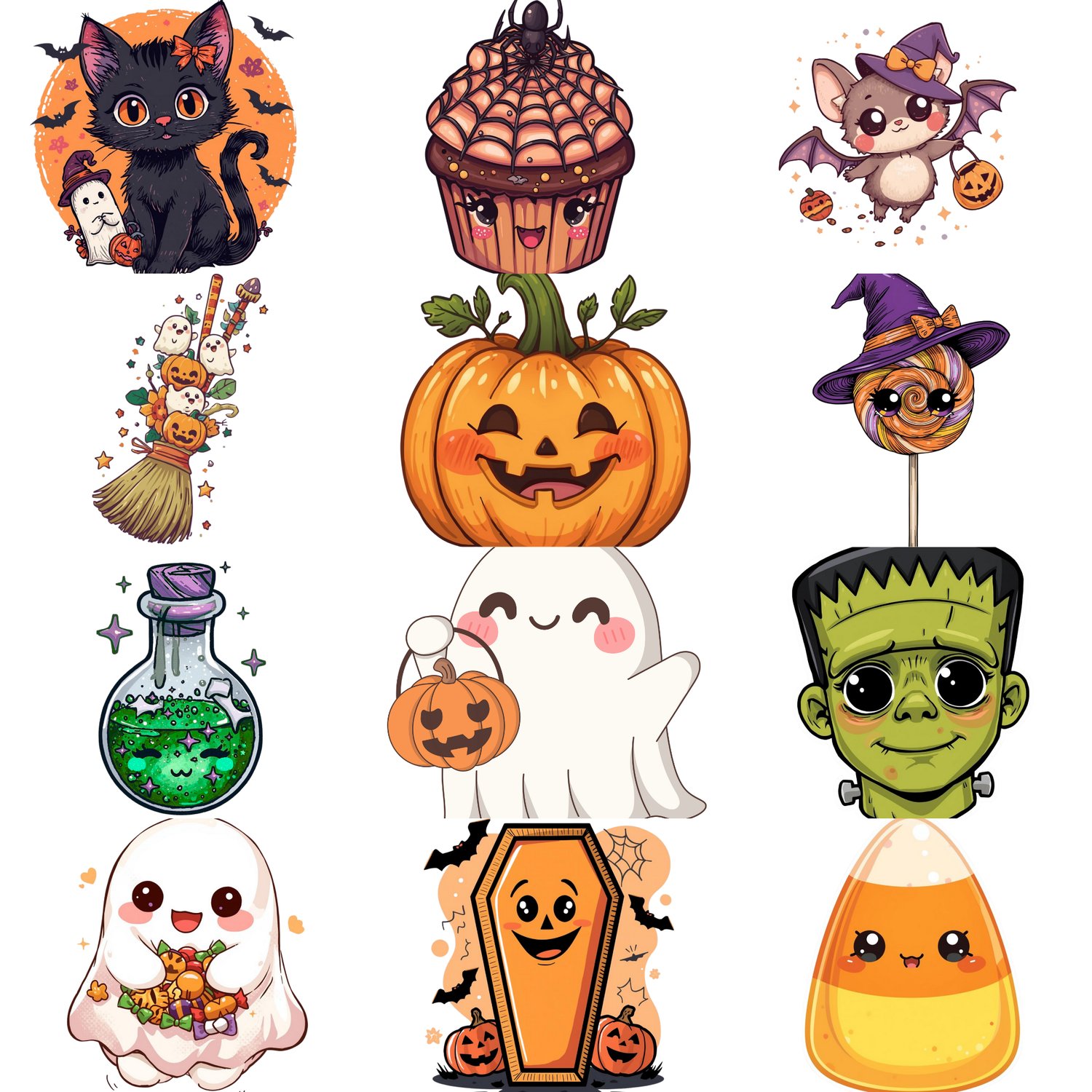 Kawaii Halloween Clipart | 12 PNG + SVG Files | 60 Spooky PNG Files for Cricut & Sublimation