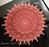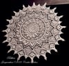 Pattern consists of 38 rounds. The displayed doily measures 19 inches / 47.5 cm, used around 500 yards of size 20 mercerised cotton thread with 1.75 mm steel hook.