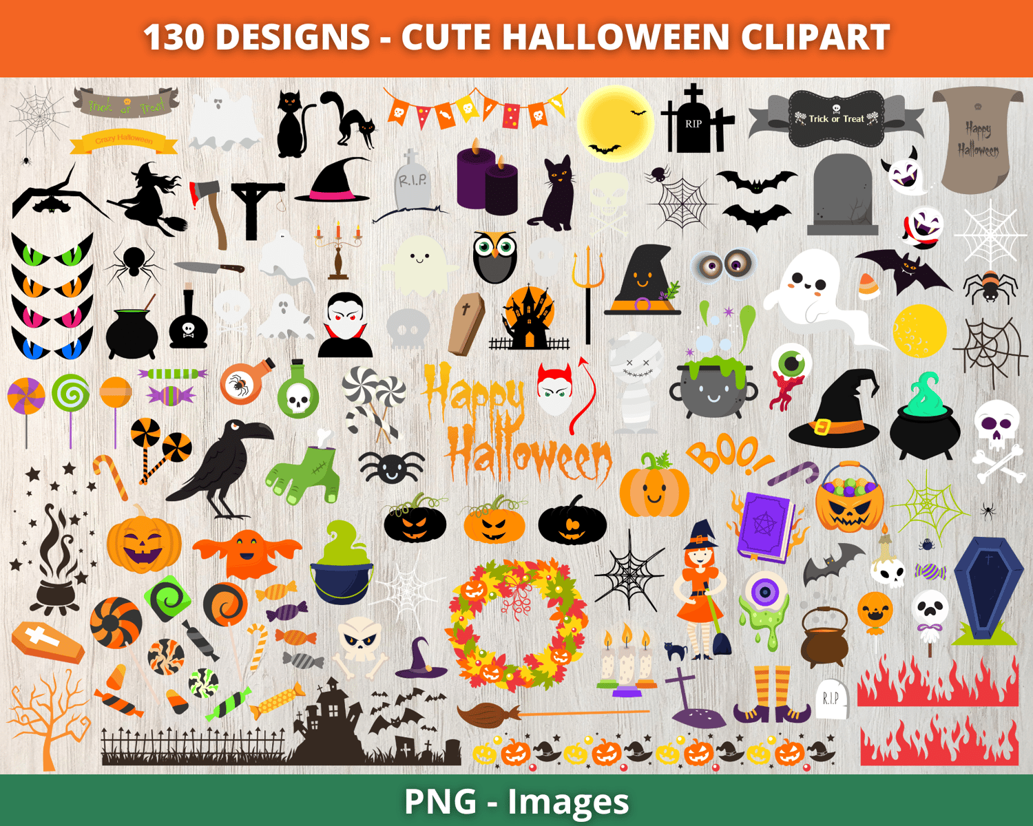 Halloween Clip Art | Cute Little Halloween | Halloween Bundle | ghost, pumpkin, haunted house | Happy Halloween Clipart | Instant Download