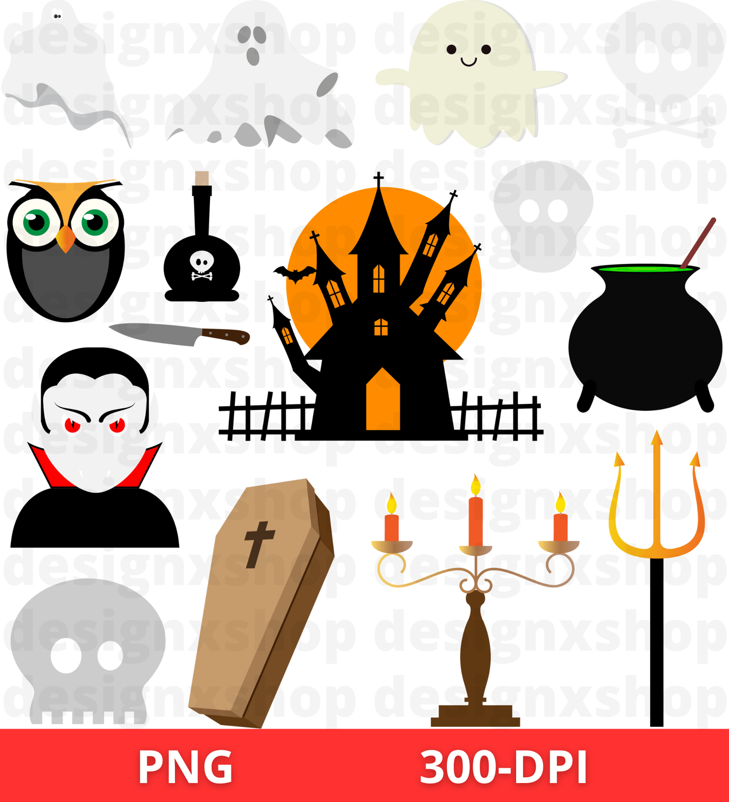 Each clip art element is saved separately as a 300 dpi PNG Images.