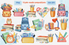 This "Back to School" clipart collection includes a variety of school supplies illustration, in bright and fun color palette to give a fresh and fun look to your projects.